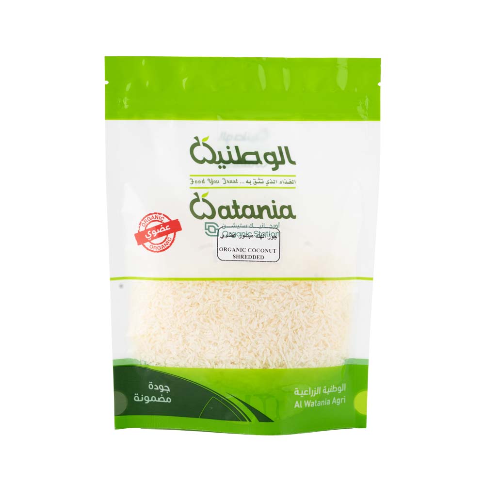- ملاحظات هامة: استمتع بالنكهة الطبيعية والفوائد الصحية لجوز الهند المبشور العضوي كجزء من نظام غذائي متوازن.