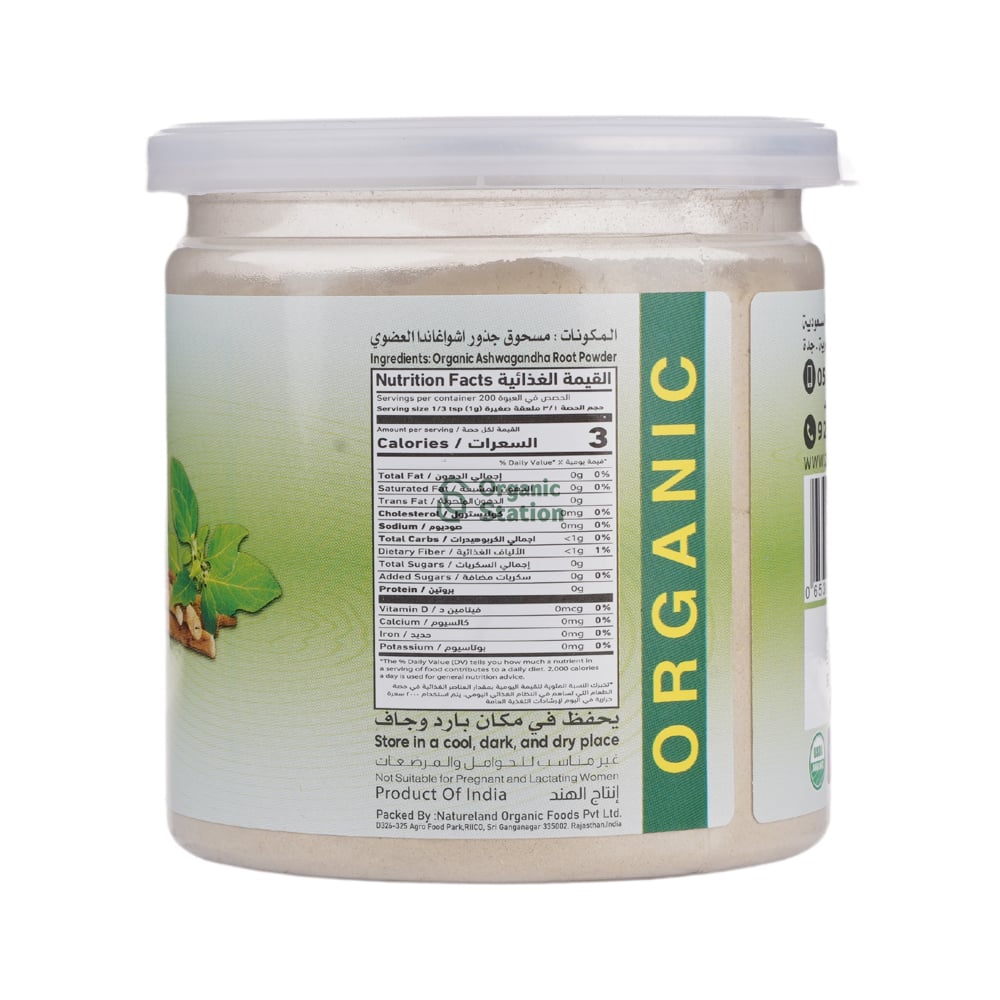 - المكونات: مسحوق جذور أشواغاندا العضوي.